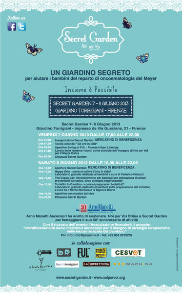 7-8 Giugno 2013: Secret Garden insieme a NoiperVoi per il Meyer ONLUS - Giardino Torrigiani - Ingresso Via Gusciana 21 – 50124 Firenze