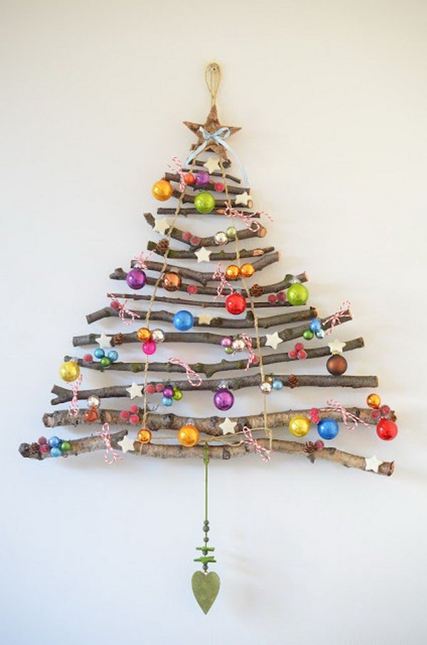 O ancora si possono appendere dei rami di diverse misure legati da cordini, a cui attaccare delle decorazioni classiche: