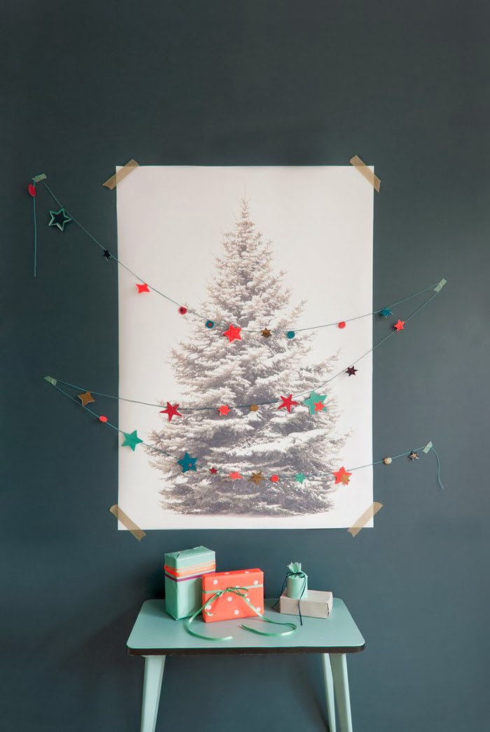 Molto particolare, per chi ama il genere superminimal, è l'albero di Natale disegnato su di una lavagna: dopo aver scelto e creato l'albero, lo si può colorare con gessi colorati e decorare con ornamenti a piacere, biglietti, cartoline e fiocchi. In alternativa, una bella fotografia può diventare il 'poster di Natale'.