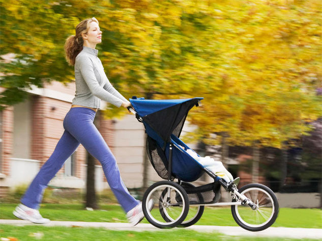 1) Esegui un riscaldamento di almeno 5/10 minuti camminando a passo sostenuto e spingendo il passeggino: la testa deve essere alta, lo sguardo avanti, le spalle basse e il più possibile rilassate, il core - zona addominale e zona lombare - ben contratto.
