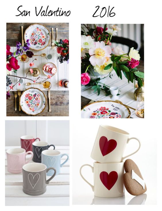Per una serata speciale, in tavola, il rosso si mescola all'oro senza leziosità e ai colori della primavera con i suoi fiori e profumi per un'anteprima romantica: piatti di sapore vintage, tessuti semplici, fiori... e la cena è servita! Oppure un semplice mug 'cuorato' serve per iniziare bene la giornata o per concluderla con una calda tisana.