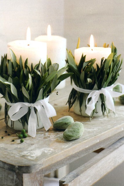 Le candele possono essere rivestite con piccoli vestiti in lana, fatti con i ferri: