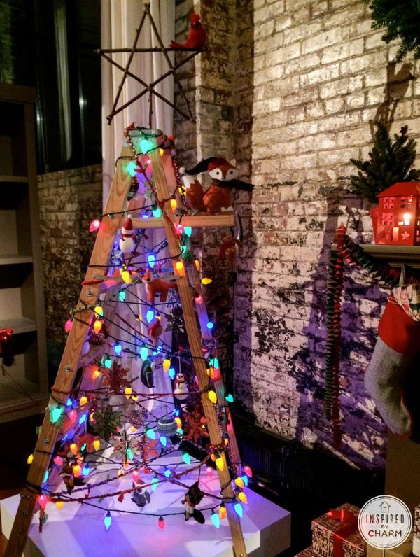 Se volete un albero di Natale davvero unico nella sua originalità, utilizzate una vecchia scala in legno e avvolgetela di luci, ghirlande, deorazioni: sarà davvero eco-friendly e assolutamente speciale: