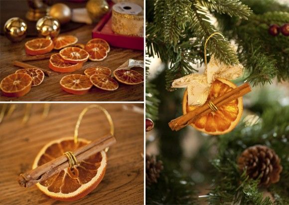 Molto particolari anche le palline realizzate con la tecnica del découpage o le ghirlande formate da fettine di arancia seccate (tutorial su desainer.it)