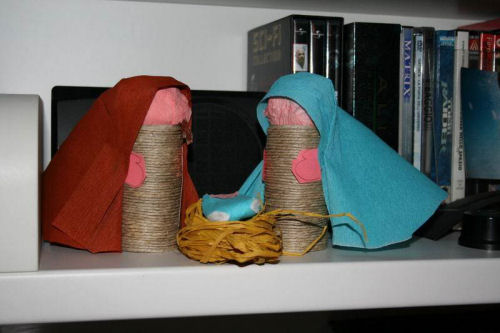 Prumiao e Carlotta hanno fatto i Babbi Natale coi rotoli di Carta igienica.