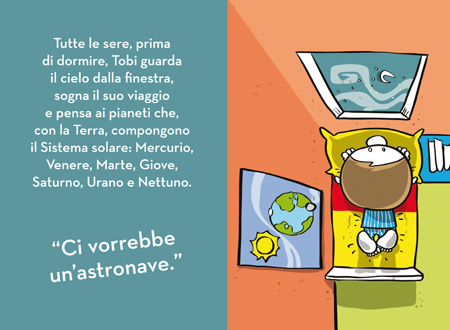 Tobi è un bambino, curioso di ciò che sta intorno, pieno di inventiva e di fantasia. Ha anche un sogno: quello di diventare astronauta.